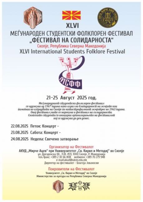 Macedonia, Kumanovo, Skopje 2025Galeria/Photos » AKTUALNOŚCI / NEWS 2024/25 » Macedonia, Kumanovo, Skopje 2025XLV International Students’ Folklore Festival 18-25 August 2025 Skopje, grupa II i kapela